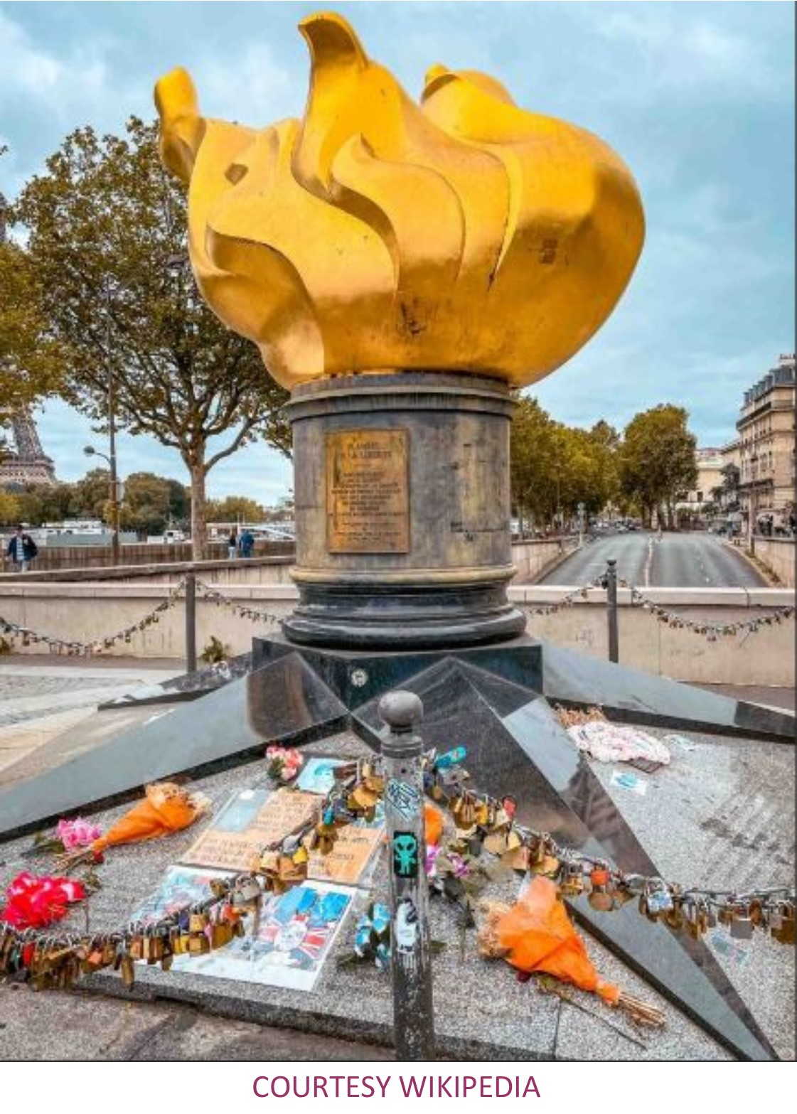 After Diana’s death people used to gather at the Square mourning her death. They would leave behind bouquets and cards at the square. Slowly and slowly the visitors started placing flowers, cards, candles and photographs of Diana; and fly-posting commemorative items at the base of the sculpture. They also started attaching love locks to the chain around the monument. So, eight years after its dedication in 1989, the monument became an unofficial memorial for Diana. In 2018, the Council of Paris officially voted to name the area around the Flame of Liberty as Place Diana (Diana Square). Most people who come here think that it was built for her. See the photographs and watch the video.