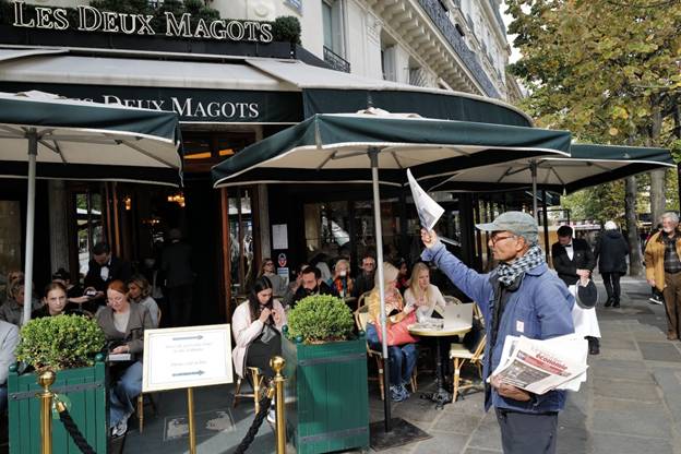 Each day, as he has for the past 52 years, the 73-year-old walks extensively on his rounds averaging 15 kilometers (9.5 miles) a day delivering papers to patrons in the cafés, restaurants and bars of the Saint-Germain-des-Prés neighborhood of the tony Latin Quarter during his eight-to-ten-hour seven-days a week schedule. In an era before people began turning to television news along with digital sources, he sold around 300 newspapers each day. Now, he said, he sells “roughly 30 copies a day.”