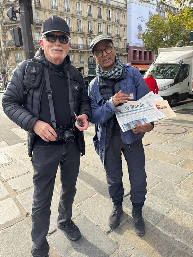 Never too busy to engage in a short conversation, the always affable and perpetually lively Akbar was kind enough to speak with me and my wife Elaine about his being Knighted in the Ordre Nationale du Mérite later this year for his contribution to French culture. He was bestowed that honor by French President Emmanuel Macron, who he first befriended when Macron was a student in Paris. The award recognizes Akbar’s unique place in maintaining a dying aspect of French culture as a newspaper vendor in a world that has turned away from physical newspapers. He is being recognized for his long service in his chosen profession as Au grade de chevalier, M. Akbar (Ali), vendeur de journaux à la criée; 52 ans de services. in Paris.