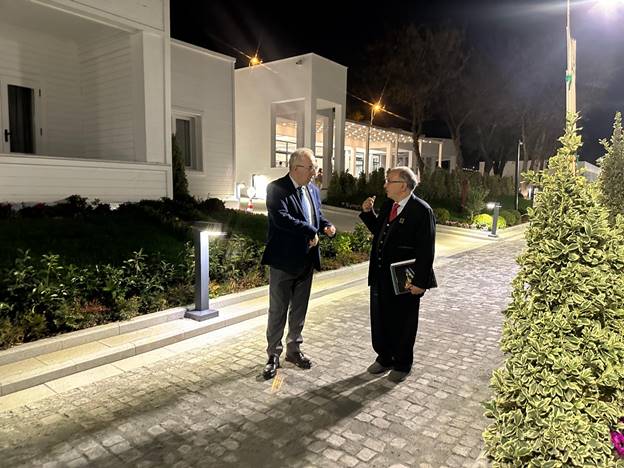 Within a few minutes we reached the main entrance—an iron gate guarded by armed security. The officer asked why we were there. We explained that we were invited by a politician and gave him the name. He made several calls to confirm. Just then, Mustafa Kaya arrived, and the gate opened. I told him that the university student had kindly guided me and simply wanted to offer his salaam. They shook hands, the student greeted him respectfully, and then left quietly.