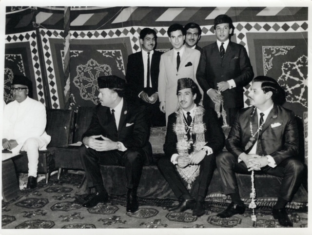 At Tahir’s wedding 1966: L to R seated: Ayub Khan, Tahir, Gohar, I am standing in a light suit right behind Tahir