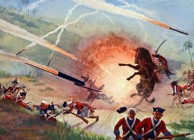 A painting showing the British forces confronted with Mysorean rockets - Wikipedia