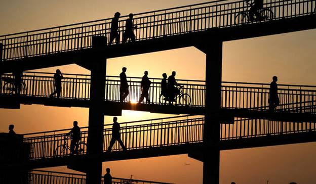 Asian laborers cross a pedestrian bridge in Dubai as they head to work at a vegetable market - AFP file photo