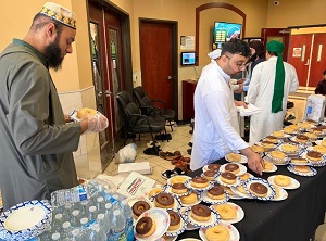 The importance of making guests feel welcome, especially during Eid days, was vividly in evidence here. And the organization practiced this as well as donuts and other desserts were available free, for all attendees. The gathering had the feel of any Eid event held in Pakistan or Northern India (minus the donuts) especially the attire worn by the men, women, and children. The Faizan-e-Madinah Mosques are a part of the Dawat-e-Islami USA organization which is associated with its namesake in Karachi, Pakistan. As it states on their website “Guided by the principles of love, peace, and unity, it conducts educational programs, religious events, and social welfare initiatives to serve and uplift the Muslim community across the United States.”