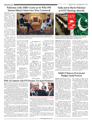 matter. Sources further said that HBO Axois’ decision to censor the premier’s comments qualify as The ministry said that Pakistan had assured the FATF at the highest level of imple-