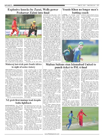 GROS ISLET: Keshav Maharaj be- to take a hat trick in Tests was Geoff DUBAI: Islamabad United finally Earlier in the evening Multan’s abad batting in the chase and he was