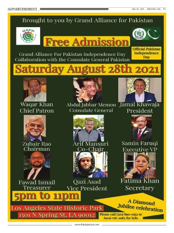 ADVERTISEMENT JULY 30, 2021 – PAKISTAN LINK – P3 www.PakistanLink.com