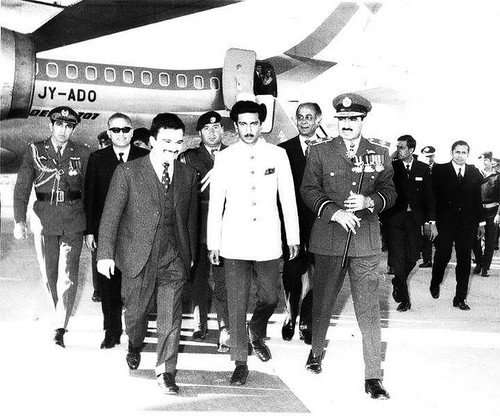 Khyber Pakhtunkhwa Governor Hayat Muhammad Khan Sherpao, PAF C in C Air Marshal Rahim Khan and Foreign Secretary Sultan Muhammad Khan receive Prince Hassan Bin Talal of Jordan, 1972
