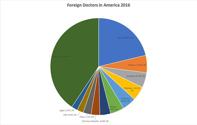 Pie Chart of origins of foreign medical graduates in US - Source OECD |